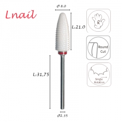 Название продукта: Фреза «Большое Пламя» 8,0 мм – Педикюр, керамика (белое покрытие), мелкая насечка